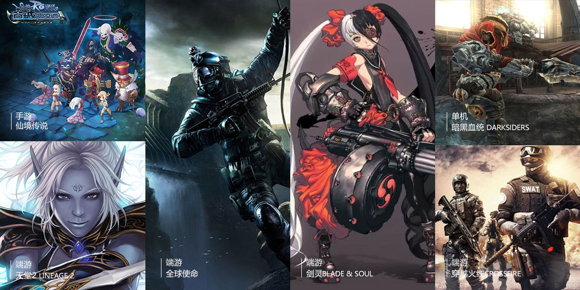 《穿越火線》、《天堂2》、《地獄之門》、《暗黑血統》、《全球使命》、《戰爭機器資料篇》、《劍靈》等項目。